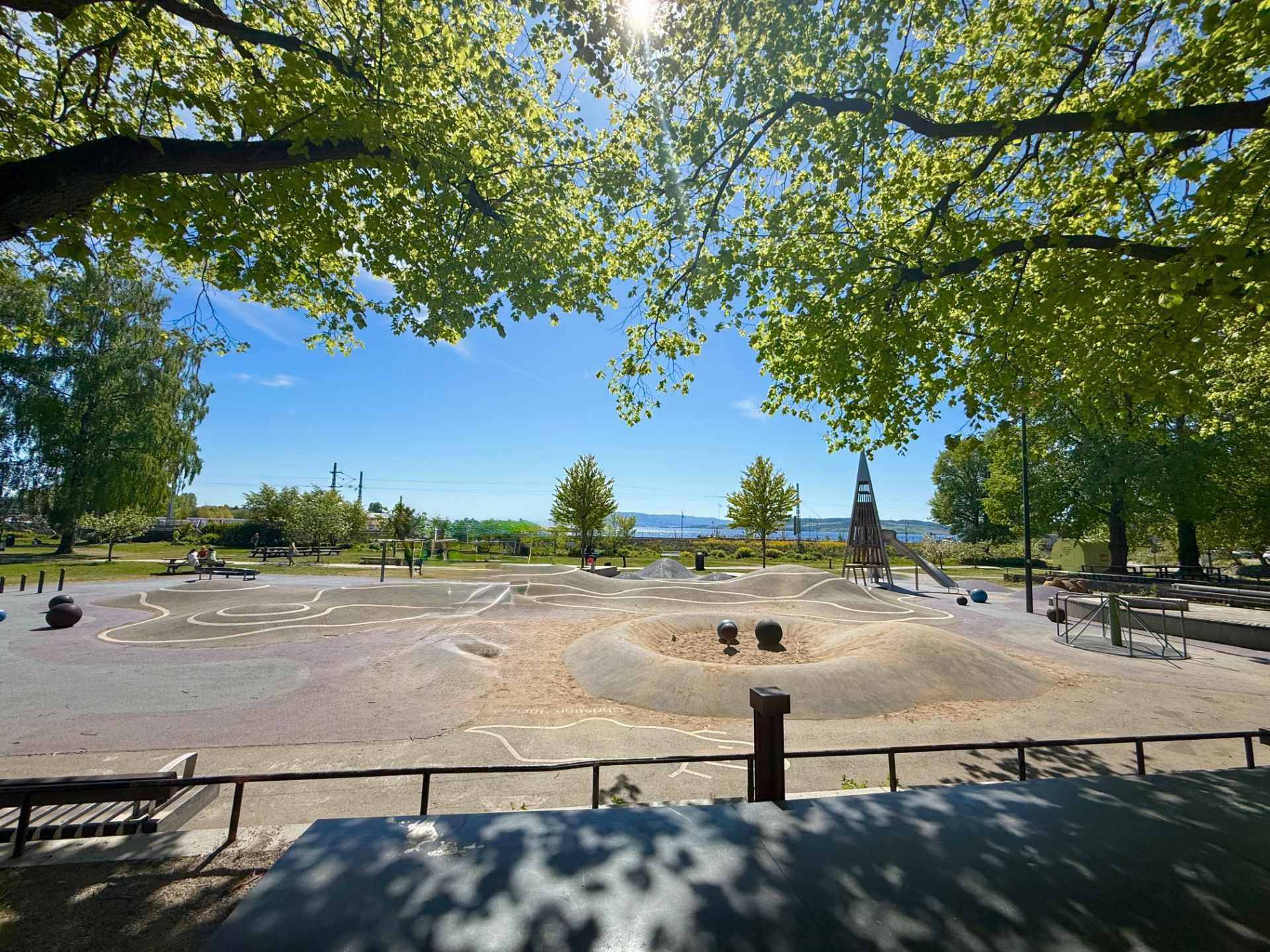 Dagligvarehandel med en flott Kiwi-butikk ligger i gangavstand fra feltet. Store, fine lekeplasser for barna inne på feltet innbyr til lek og moro for de minste.