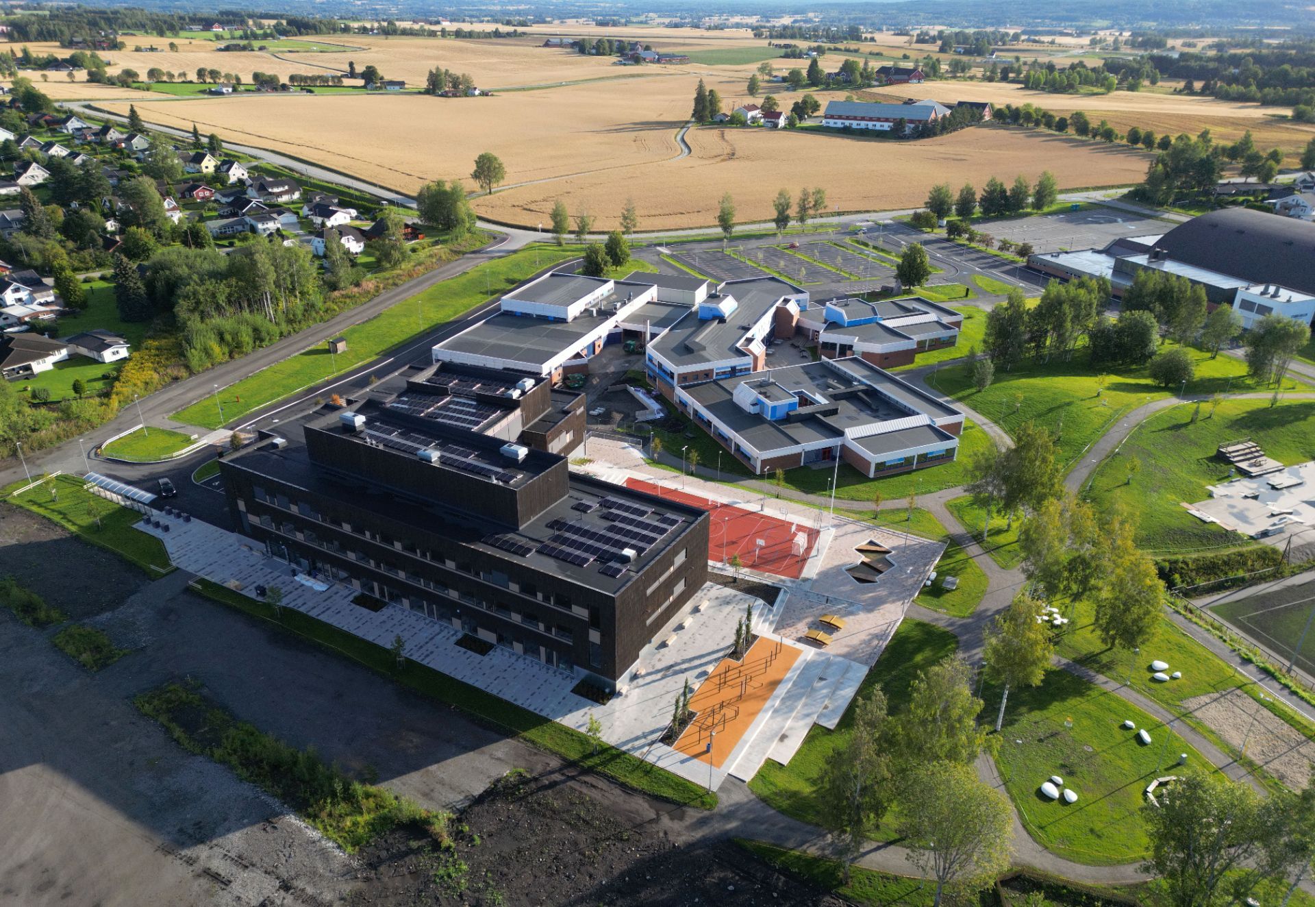 Stange ungdomsskole åpnet i 2024 og tilbyr topp moderne fasiliteter, med plass til rundt 450 elever.