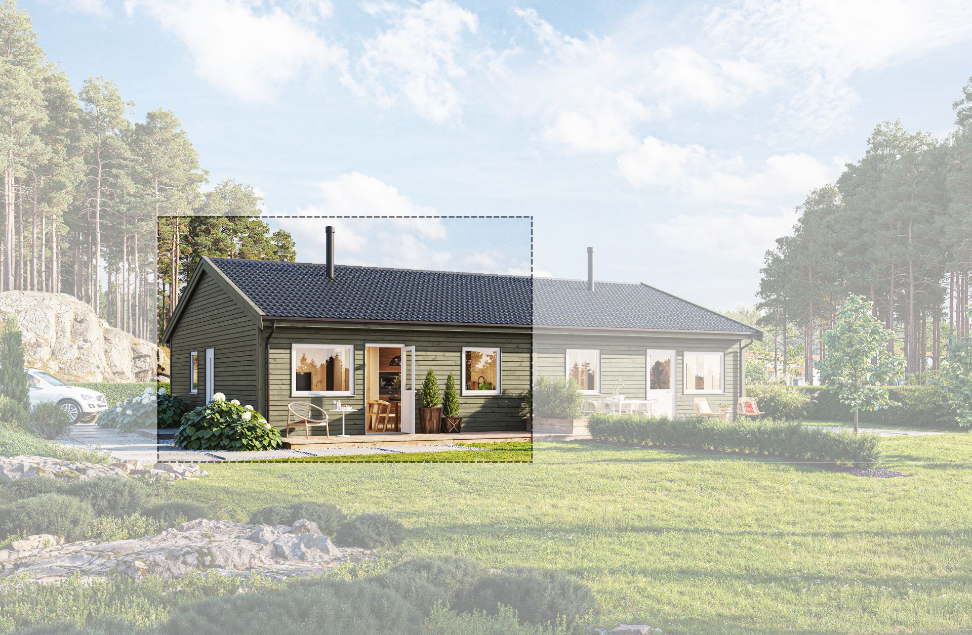 Fordelt på 64 kvadratmeter får du 2 soverom (mulighet for 3 sov), et romslig bad/ vaskerom, gang med plass til garderobe, samt et lyst og innbydende allrom med stue og kjøkken i åpen løsning. Fra stuen har du utgang til markterrasse og hage med fine plenarealer.